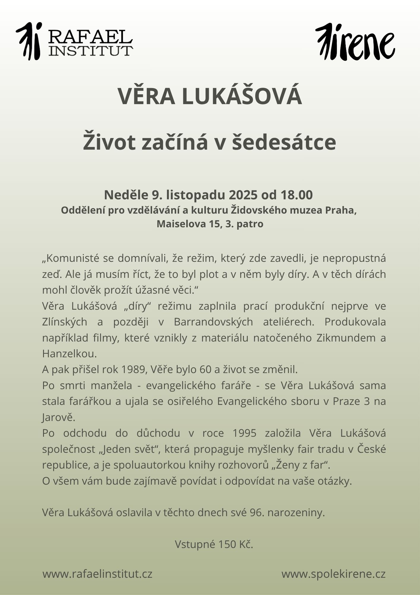 Více informací o Věře Lukášové najdete na přiložené pozvánce.